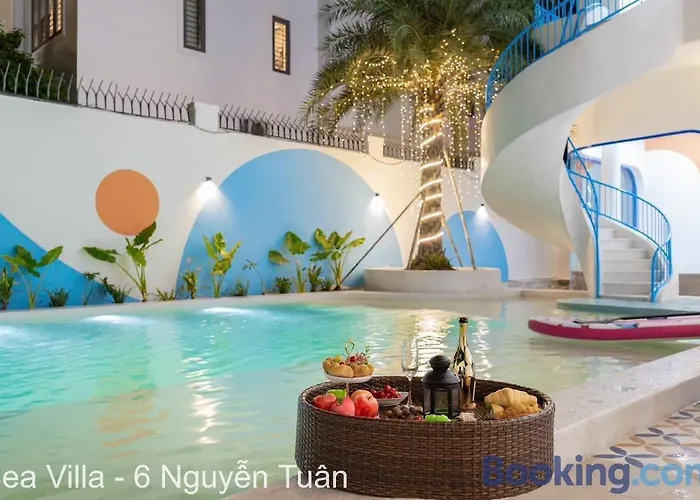 Villa Ho Boi Vung Tau Gan Bien Di Bo Ra Thap Tam Thang - 06 Nguyen Tuan is a 6-minute walk from Lotte Cinema, offering guests to unwind at a plunge pool, a Jacuzzi, and a sauna. This villa features opportunities for billiards in the area, not far from the Vung Tau Back Beach.